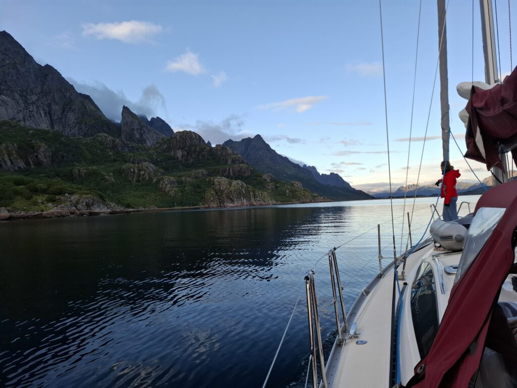 Operating from Harstad, the course uses nearby waterways and the Lofoten archipelago: Tjelsund tidal channels, Stormolla and Litlmolla for tide and exposure practice, Kabelvåg for provisioning and briefings, and Trollfjorden for tight‑pilotage exercises. Weather and tides determine the final itinerary; training emphasizes decision‑making and weather strategy in real conditions.